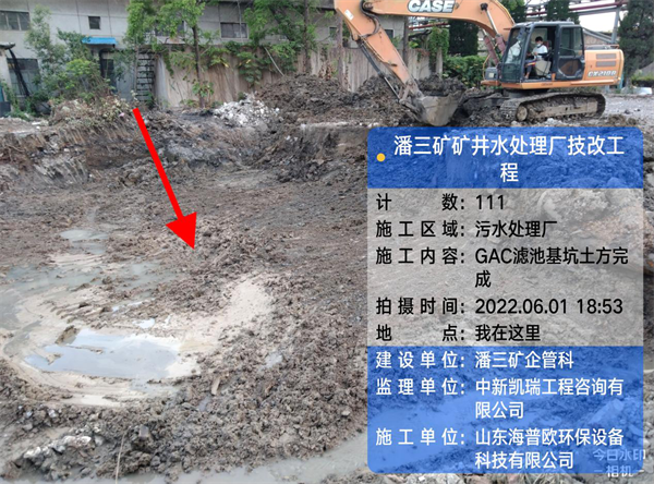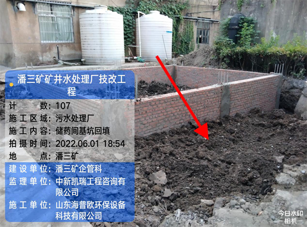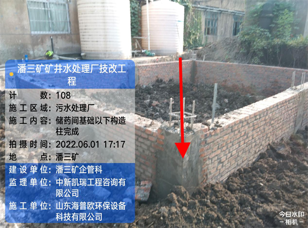 工程名稱(chēng):潘三礦礦井水處理技改工程 氣溫:34-22° 天氣:晴