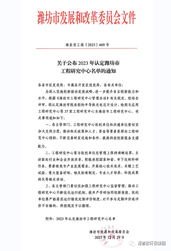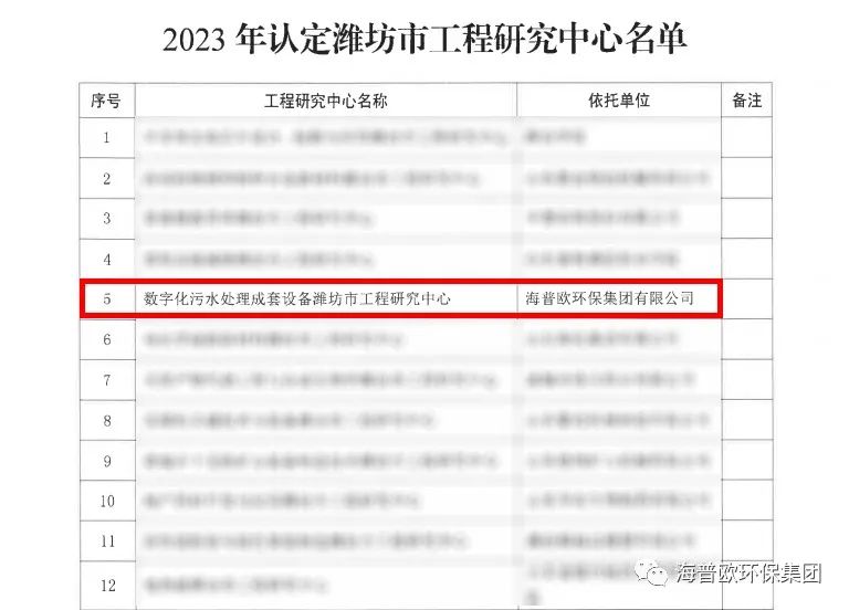 這次認(rèn)定不僅是對(duì)海普歐環(huán)保集團(tuán)技術(shù)實(shí)力的肯定,也是濰坊市工程研究中心對(duì)數(shù)字化污水處理領(lǐng)域的關(guān)注與支持。