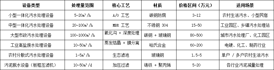 二、2024 污水處理設(shè)備分類價(jià)格表參考