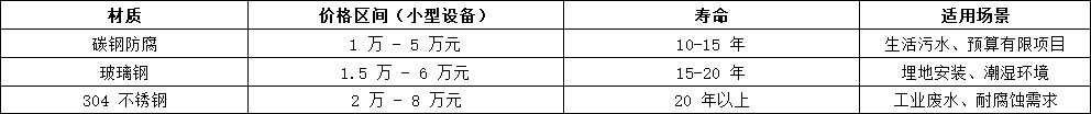 •若為農(nóng)村單戶處理生活污水,1.5 萬 - 5 萬元即可滿足需求;