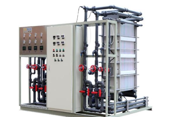 在電滲析過程中,離子交換膜不像離子交換樹脂那樣與水溶液中的某種離子發(fā)生交換,而只是對(duì)不同電性的離子起到選擇性透過作用,即離子交換膜不需再生。電滲析工藝的電極和膜組成的隔室稱為極室,其中發(fā)生的電化學(xué)反應(yīng)與普通的電極反應(yīng)相同。陽極室內(nèi)發(fā)生氧化反應(yīng),陽極水呈酸性,陽極本身容易被腐蝕。陰極室內(nèi)發(fā)生還原反應(yīng),陰極水呈堿性,陰極上容易結(jié)垢。